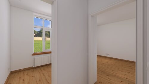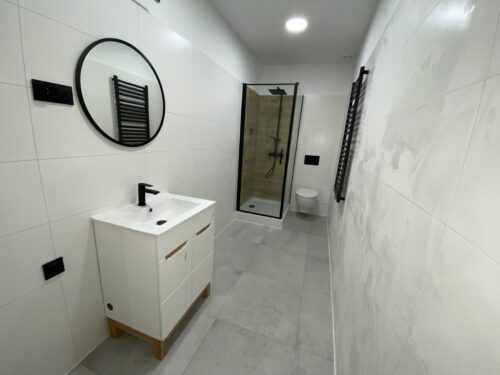 łazienka z prysznicem, pokoje do samodzielnej aranżacji. Do mieszkania przynależy
